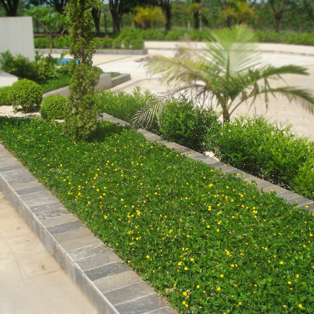 Também conhecida como grama amendoim forrageira, é uma opção ornamental e funcional, com pequenas flores amarelas que agregam beleza. Indicada para áreas inclinadas, onde auxilia no controle de erosão, e para espaços decorativos com pouco tráfego.